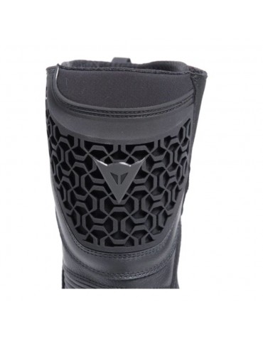 Botas DAINESE Fulcrum 3 Gore-tex preto. Fulcrum 3 Gore-Tex® são as novas botas de turismo para todas as condições climatéricas, fabricadas inteiramente em pele de vaca de prestígio. Foram concebidas para os motociclistas que enfrentam longas viagens em condições climatéricas adversas, graças também à presença da membrana Gore-Tex® Performance, que garante um elevado nível de conforto climático e proteção contra as temperaturas mais frias. A sola é feita de Groundtrax® com composto e piso específicos para estrada e raras utilizações fora de estrada, para garantir estabilidade e aderência em vários tipos de terreno e o máximo conforto ao descer da bicicleta. As solas são assimétricas, de acordo com as alavancas utilizadas na bicicleta. A qualidade e a durabilidade dos materiais aliam-se ao conforto e à facilidade de adaptação aos diferentes tipos de corpo, garantidos pela presença de tiras duplas de velcro e de tecido elástico na barriga da perna, bem como de uma proteção flexível e macia para um conforto duradouro.