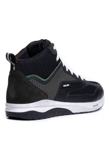 Botins TCX Nalbak Air preto / verde. As botins de motociclismo certificadas com membrana impermeável T DRY (sem PFAS) e inserção Zplate®. Tem uma sola Groundtrax® que facilita a estabilidade no selim e combina um elevado nível de proteção e conforto, ideal para as deslocações diárias de mota, mesmo nos dias mais quentes.