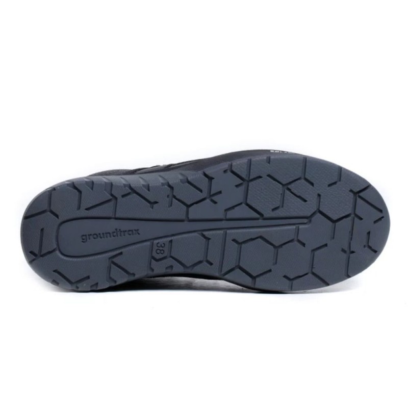 - Sola exterior de borracha Groundtrax®, concebida para um conforto superior ao caminhar