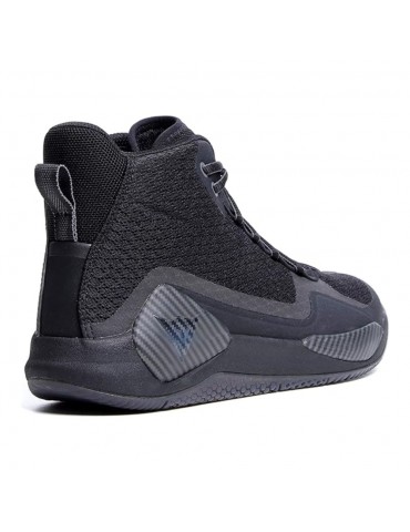 Botins DAINESE Atipica Air 2 preto / carbono. Os Atipica Air 2 são os sapatos de motocicleta certificados que garantem o máximo conforto, tanto ao andar a pé como a pé, para uso diário em qualquer ambiente urbano.a construção em malha da parte superior com inserções quentes permite a passagem de ar, ajudando os sapatos a serem leves e ventilados, ideais mesmo na estação mais quente.o aspecto desportivo é combinado com cuidado e atenção aos detalhes técnicos. Os reforços no calcanhar e tornozelo, combinados com o reforço na zona de marcha, garantem a segurança, enquanto as solas, que resistem à deformação em caso de impacto, são construídas com a tecnologia exclusiva Groundtrax®, com uma geometria assimétrica da banda de rodagem nas zonas de marcha e travagem para garantir o máximo controlo da passada. A disposição da sola é desenvolvida para maior conforto na condução, garantindo elevados níveis de estabilidade, aderência e tracção, tanto nos pés da moto como no chão, enquanto que o apoio para os pés Ortholite® garante a máxima respirabilidade e amortecimento duradouro.