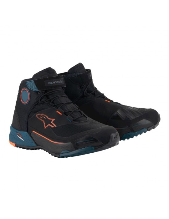 Botins ALPINESTARS CR-X Drystar Riding preto petrol / laranja fluo. O CR-X Drystar®, um calçado protetor para motociclistas com um conforto inigualável para caminhar o dia todo fora da moto, possui uma forma de calçado desportivo que proporciona um ajuste «justo» juntamente com um «amplo volume interior» para garantir um bom conforto durante todo o dia, enquanto a membrana Drystar® impermeável e respirável garante um desempenho eficaz em qualquer condição climática.