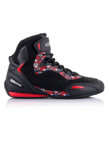 Sapato ALPINESTARS Faster-3 Rideknit preto / vermelho brilhante. O sapato Faster-3 é construído com um chassis de microfibra leve e durável e um forro de malha para conforto, resultando num sapato de corrida com um estilo agressivo que oferece desempenho, precisão, flexibilidade e integridade estrutural.