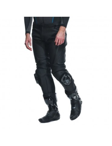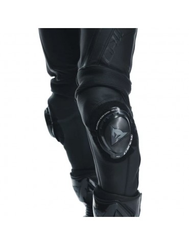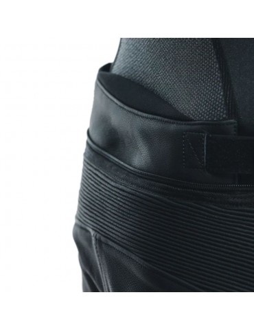 Calças DAINESE Delta 4 preto / preto. Delta 4 são calças de motociclista em pele de vaca tutu combinada com inserções de tecido elástico S1, tal como os blusões Racing 4 e Avro 5, que complementam na perfeição e aos quais se podem ligar graças ao prático fecho de ligação.