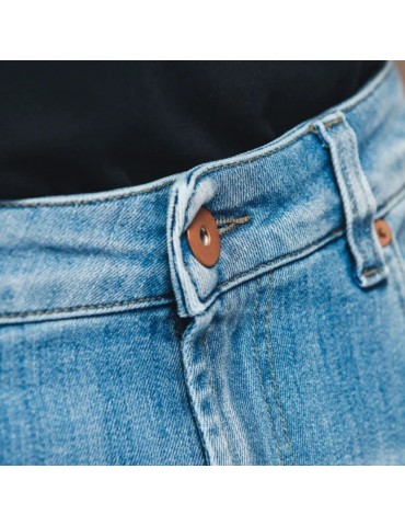 Calças DAINESE Denim Stone Slim Tex azul claro. Calças de corte fino para uso quotidiano, fabricadas em Armalith®, um tecido ultraleve e muito resistente, superior à Cordura ou à fibra de aramida. As protecções Pro-Shape 2.0 proporcionam segurança e conforto para uma utilização quotidiana.