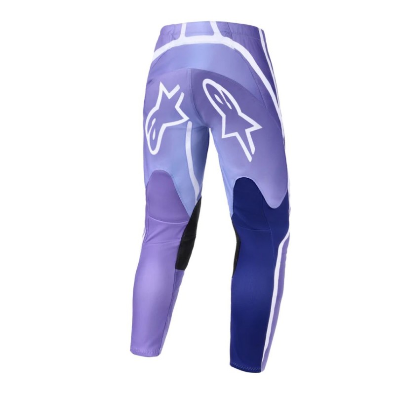 Calças ALPINESTARS Stella Fluid Apex violeta / branco. Novidade na coleção 2026, a calça feminina Stella Fluid Apex foi especialmente desenvolvida para oferecer às motociclistas de motocross desempenho ideal e excepcional liberdade de movimentos nos terrenos mais exigentes. Sua construção técnica em tecido de poliéster 600D reforçado inclui painéis elásticos e um corte 3D pré-moldado que garante ergonomia e durabilidade excepcionais em áreas de alto desgaste. Este corte esportivo é complementado por reforços em couro sintético nos joelhos para controle total da motocicleta e um fechamento com catraca que garante um ajuste seguro e personalizado.