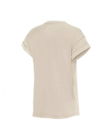 - T-shirt feminina de gola redonda com a marca Dainese na frente.