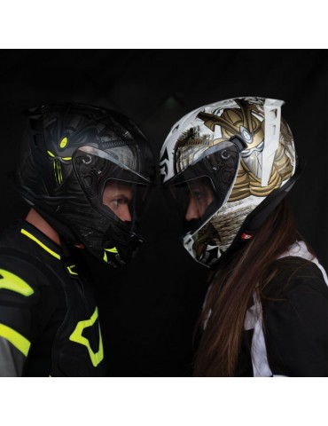 - A viseira tem pinos especiais para inserir a lente Pinlock® contra o embaciamento da viseira que pode ocorrer devido à respiração e à diferença de temperatura dentro e fora do capacete.