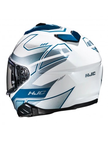 Capacete HJC i71 Iorix MC2. O i71 ultrapassa os limites de um modelo Sport-Touring com o seu novo e elegante design de concha. O capacete avançado de policarbonato tem agora 3 conchas nos 6 tamanhos disponíveis para ajudar a optimizar o peso e o conforto do cavaleiro. A ventilação superior reajustada com aberturas de boca alargadas permite uma maior entrada de ar e ventilação. Também são novidade na i71 a viseira e a pala solar. A viseira HJ-38 Pinlock ready vem com um novo sistema de fecho de PE (Push/Eject) para maior segurança, sendo ao mesmo tempo fácil de usar com luvas.