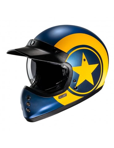 Capacete HJC V60 NYX MC3SF. Estilo clássico com um toque moderno, o Hjc V60 acrescenta uma nova categoria de capacetes à nossa linha todo-o-terreno de 2022. Inspirado no FG-01 original dos anos 80, o V60 vai para além do aspecto vintage, com caprichos da nova era como uma concha de fibra de vidro leve, uma grande pala de sol interior IS-10, bolsos de altifalante incorporados, interior amovível e lavável e bochechas de libertação de emergência para maior segurança.