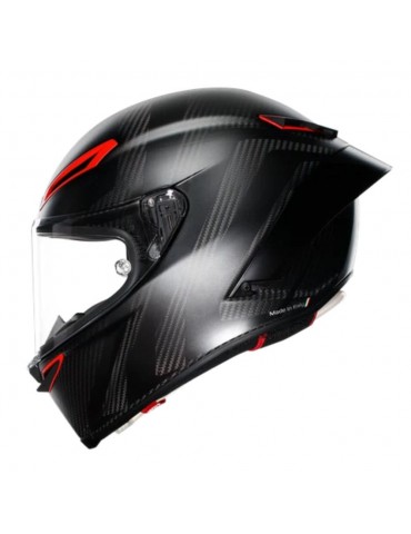 Capacete AGV Pista GP RR E2206 DOT MPLK Intrepido carbono fosco / preto / vermelho. O capacete criado para o MotoGP™ está agora disponível para todos os pilotos. O Pista GP RR é uma réplica exacta do capacete AGV utilizado nas corridas pelos campeões do mundo. Recebeu, portanto, a nova homologação FIM, que certifica o mais alto nível de proteção possível, mesmo contra qualquer torção perigosa da cabeça. Graças ao protocolo de conceção exclusivo da AGV Extreme Safety, o Pista GP RR já ultrapassa as exigências da rigorosa homologação ECE22.06. Cada pormenor foi concebido para garantir o máximo desempenho.