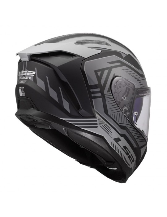 Capacete LS2 FF817 Challenger II Dravix cinza fosco. Um capacete de turismo de alto desempenho concebido para viagens longas. Fabricado com o nosso HPFC, que combina leveza e segurança excecionais. Equipado com uma excelente visão periférica e uma viseira solar integrada. Equipado com Pinlock 120 XLT Max Vision para maior segurança.