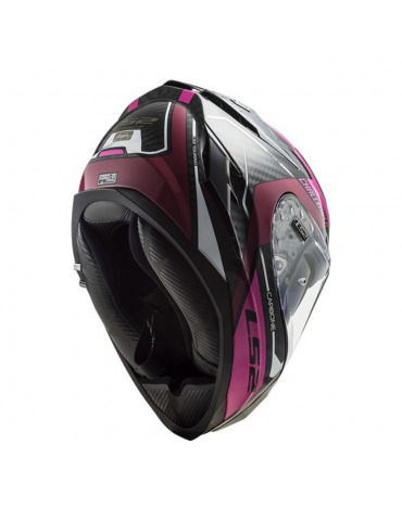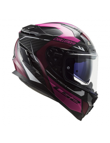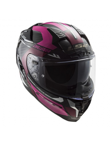 Capacete LS2 FF327 Challenger C Thorn rosa. É um capacete com concha de fibra de vidro, muito aerodinâmico e com pala solar integrada.