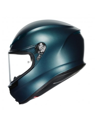 Capacete AGV K6 Solid MPLK petrolio fosco. O K6 é o novo capacete AGV de cara cheia que incorpora as melhores características dos segmentos desportivos e de turismo. Excessivamente versátil, é adequado para todos os tipos de passeios em motociclos desportivos, nus ou de turismo desportivo. Fabricado em fibra de carbono e aramida, tem um design muito moderno e aerodinâmico. Incorpora um sistema de ventilação eficiente e está predisposto a montar o sistema de comunicação ARK.