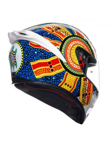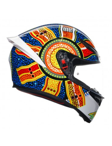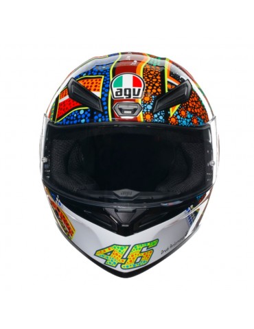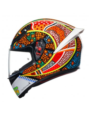 Capacete AGV K1 S E2206 Dreamtime. A forma aerodinâmica, as aberturas frontais desenvolvidas pela raça e o spoiler testado em túnel de vento maximizam as possibilidades e dão estabilidade a altas velocidades. A tampa panorâmica anti-riscos oferece um campo de visão mais amplo, tanto lateral como verticalmente, para um controlo ambiental total. Com interiores macios e removíveis Dry-Comfort, o conforto é garantido.