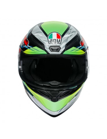 Capacete AGV K1 S E2206 Dundee fosco lime / vermelho. A forma aerodinâmica, as aberturas frontais desenvolvidas pela raça e o spoiler testado em túnel de vento maximizam as possibilidades e dão estabilidade a altas velocidades. A tampa panorâmica anti-riscos oferece um campo de visão mais amplo, tanto lateral como verticalmente, para um controlo ambiental total. Com interiores macios e removíveis Dry-Comfort, o conforto é garantido.