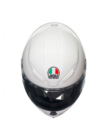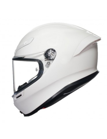 Capacete AGV K6 S E2206 MPLK branco. A AGV tem como objectivo satisfazer as suas necessidades de capacete de motociclismo, concentrando-se na colheita das melhores características dos capacetes de desporto e de turismo e depois infundindo-os no capacete AGV K6.
