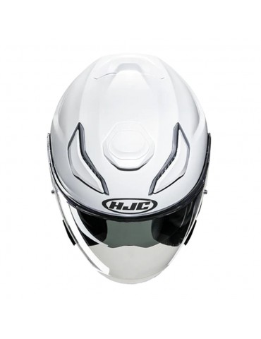 Capacete HJC F31 branco pérola. O F31 possui uma lente longa e transparente com Pinlock (película anti-embaciamento de alto desempenho) e uma pala de sol interna fumada para um conforto ainda maior em condições de luz intensa. O interior em tecido antibacteriano confortável, respirável e de secagem rápida, totalmente amovível e lavável para uma manutenção fácil, está equipado com um sistema de ventilação de canal "ACS" de alto desempenho para elevar e extrair o calor e a humidade, com 3 aberturas superiores e uma abertura de escape traseira. Pronto para receber um intercomunicador HJC 11B, 21B e 50B Bluetooth Smart de segunda geração.