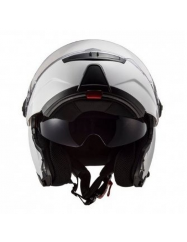 Capacete modular feito de policarbonato. Tem uma pala solar integrada.