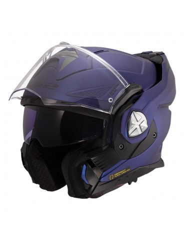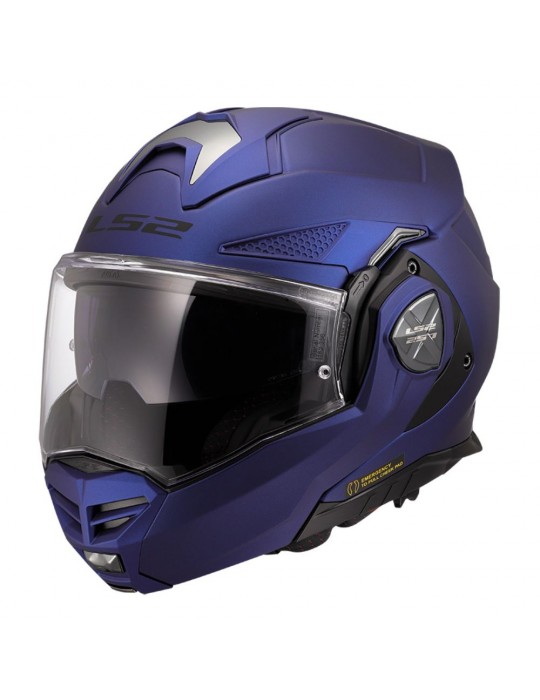 Capacete LS2 FF901 Advant X Solid azul marinho. Capacete conversível para uso em todas as estações graças à sua proteção de queixo dobrável em 180°. Perfeito para todos os tipos de pilotagem e todas as condições climáticas. Casco composto HPFC para excelente leveza e resistência. Grande viseira antirriscos preparada para o sistema antiembaçante, Pinlock Max Vision e viseira solar interna para maior conforto e segurança.