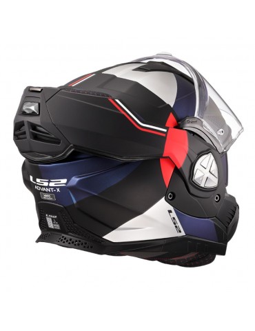 Capacete LS2 FF901 Advant X Ultra azul / vermelho. Capacete conversível para uso em todas as estações graças à sua proteção de queixo dobrável em 180°. Perfeito para todos os tipos de pilotagem e todas as condições climáticas. Casco composto HPFC para excelente leveza e resistência. Grande viseira antirriscos preparada para o sistema antiembaçante, Pinlock Max Vision e viseira solar interna para maior conforto e segurança.