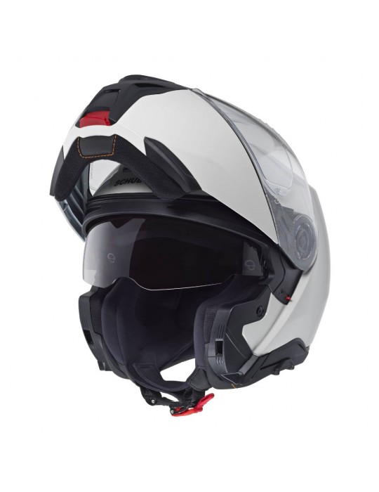 Capacete SCHUBERTH Concept branco brilhante. Este modelo é a mais recente adição à gama de capacetes modulares SCHUBERTH. Possui dupla certificação ECE-R 22.06 P/J e é o primeiro capacete aprovado para uso com intercomunicadores universais (certificação ECE-R 22.06 UA). Seja para longas viagens ou para o seu trajeto diário, o CONCEPT oferece conforto excepcional, segurança ideal e um design leve.