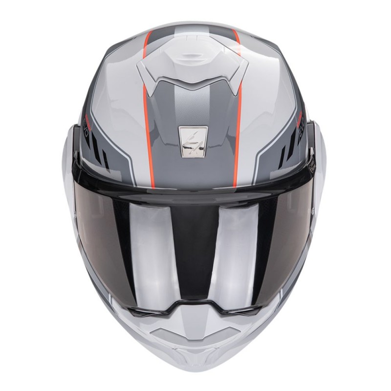 Capacete SCORPION EXO-Tech Evo Socius cinza / vermelho. O Scorpion EXO-Tech EVO Socius é um capacete modular de nova geração com design desportivo e homologação dupla P/J, ideal para quem procura versatilidade e segurança na estrada e na cidade. A sua calota compacta de baixo volume oferece aerodinâmica otimizada e máximo conforto em viagens longas.