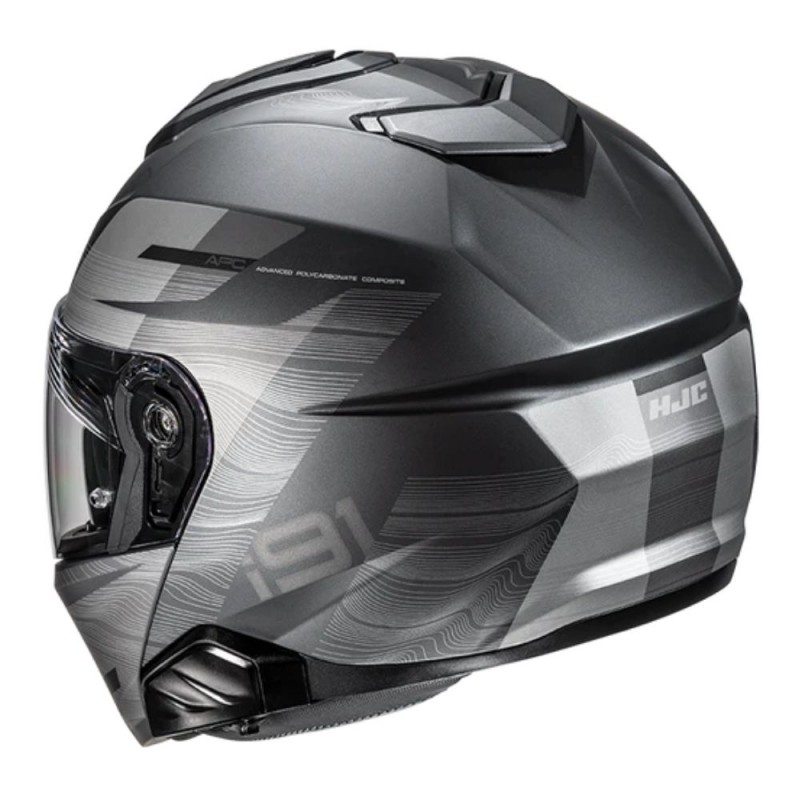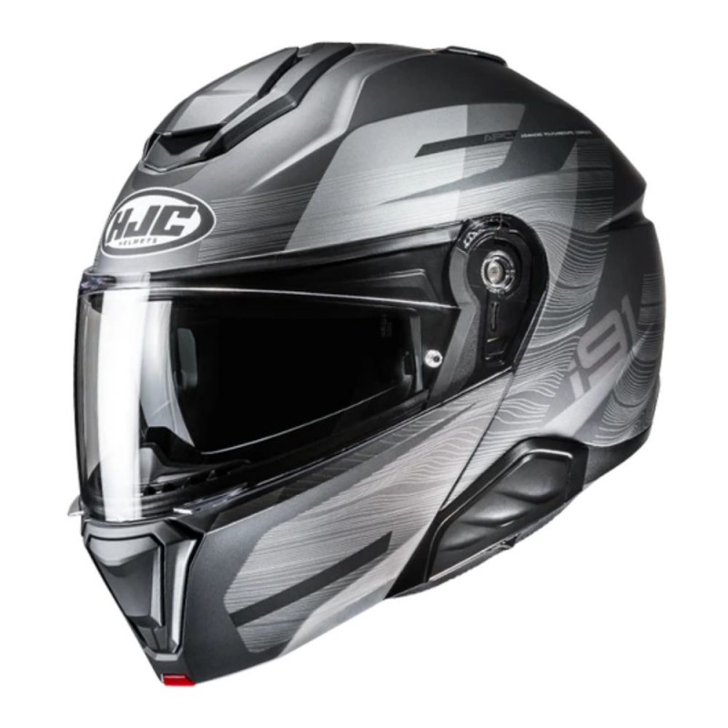 Capacete HJC i91 Dusk MC5SF. O capacete HJC i91 torna o sonho de um motociclista de turismo realidade como uma nova adição à linha icónica. Criado com a sensação de ventos fortes e estradas intermináveis em mente, o capacete compacto e de baixo perfil é um companheiro leve para qualquer viagem. Uma visão mais ampla, uma pala de sol e um interior super fresco juntam-se para reunir todas as suas características favoritas num design elegante e refinado.