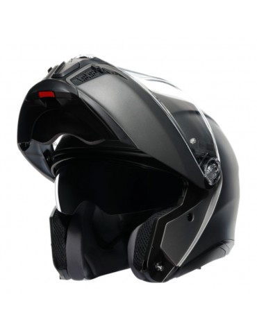 Capacete AGV Tourmodular Sólido MPLK Luna cinza fosco. O novo turmodular é aprovado de acordo com a nova norma ECE 22.06 e a dupla aprovação P/J. É um capacete modular seguro e confortável com sistema integrado de comunicação DMC Mesh, o mais alto padrão para a comunicação sem fios entre motociclistas. O turmodular foi desenvolvido para viagens longas com o máximo conforto e segurança. Concha exterior feita de fibra de carbono, fibra aramídica e fibra de vidro. O seu interior macio feito de tecido Ritmo e Shalimar com um sistema de ajuste personalizado garante a absorção imediata da humidade e do suor. Tem também uma pala solar integrada, bem como um eficiente sistema de ventilação integrado.