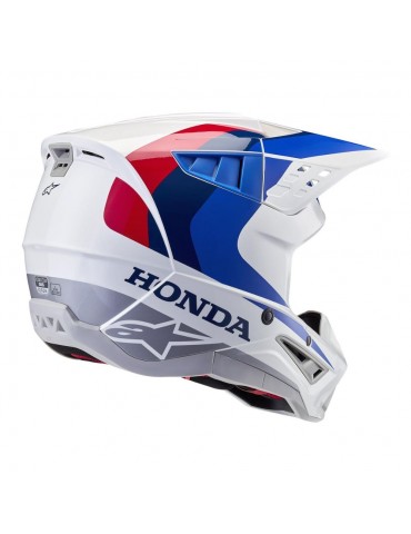Capacete ALPINESTARS Honda S-M5 ECE 22.06 branco / azul / vermelho brilhante. O capacete de motocross Alpinestars Honda S-M5 foi concebido para proporcionar uma proteção óptima aos pilotos de motocross.