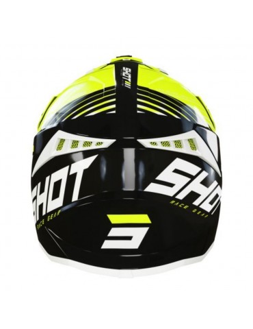 Capacete SHOT Fury preto / amarelo neon / branco. Capacete de motocross desportivo Shot Fury com acolchoamento interior Morpho-Comfort hipoalergénico. Possui um fecho inteligente com anel duplo em D, para uma sensação de segurança ainda maior e para facilitar a colocação e a retirada. Selo de teste homologado ECE 22.05.