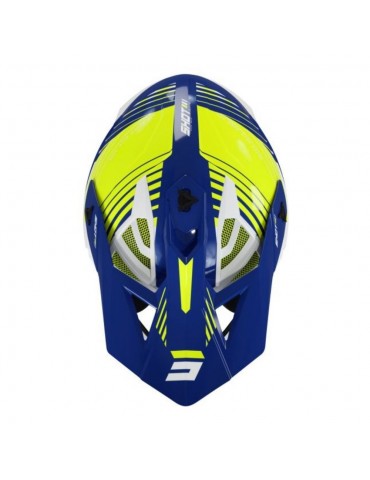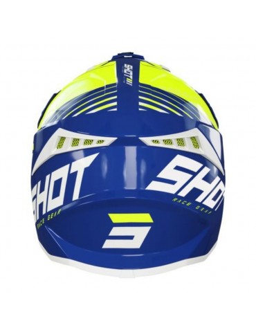 Capacete SHOT Fury navy / amarelo neon. Capacete de motocross desportivo Shot Fury com acolchoamento interior Morpho-Comfort hipoalergénico. Possui um fecho inteligente com anel duplo em D, para uma sensação de segurança ainda maior e para facilitar a colocação e a retirada. Selo de teste homologado ECE 22.05.