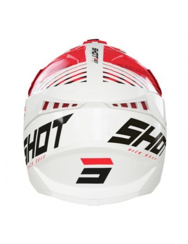 Capacete SHOT Fury branco / vermelho. Capacete de motocross desportivo Shot Fury com acolchoamento interior Morpho-Comfort hipoalergénico. Possui um fecho inteligente com anel duplo em D, para uma sensação de segurança ainda maior e para facilitar a colocação e a retirada. Selo de teste homologado ECE 22.05.