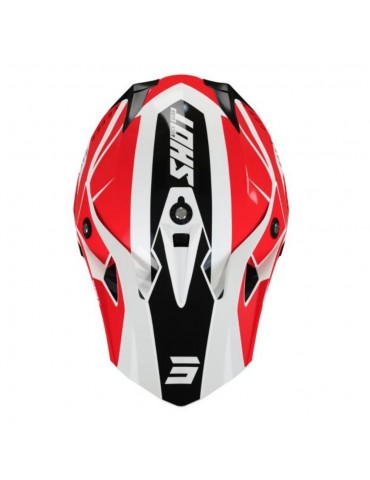 Capacete SHOT Pulse Revenge branco / vermelho / preto. O capacete Pulse Revenge é a última versão de um design moderno e bem ventilado para o seu pequeno amante da velocidade. Super leve e discreto, é fabricado em ABS leve com 6 entradas de ar e 4 aberturas de ventilação, possui um amortecedor na protecção do queixo, um sistema de fixação com duplo anel em D e um novo forro morfológico que se adapta perfeitamente à cabeça para maior conforto e estabilidade.
