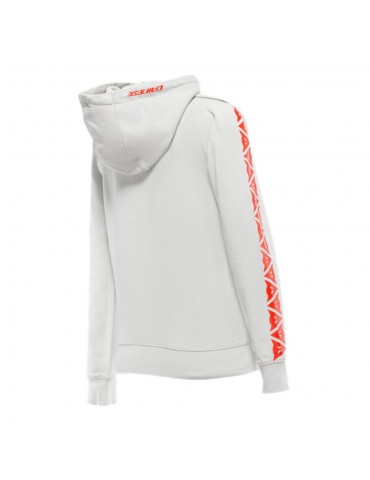 Camisola de suor DAINESE Stripes Lady claro cinza / vermelho fluor. Uma camisola casual e feminina com capuz em puro algodão, confortável e prática para uso diário e nos seus tempos livres.