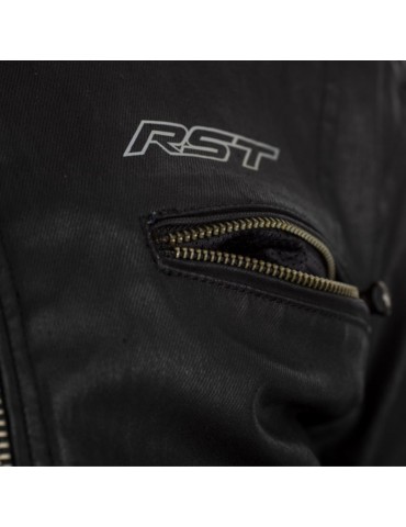 Casaco RST X Kevlar Brixton Lady preto. Desenho de moda com total protecção certificada CE. O casaco de senhora Brixton tem um leve toque urbano. Feito de um material de cera elástica, apresenta um forro interior removível e forro térmico para conforto e versatilidade, bem como ombros e cotovelos reforçados com Kevlar para maior protecção.