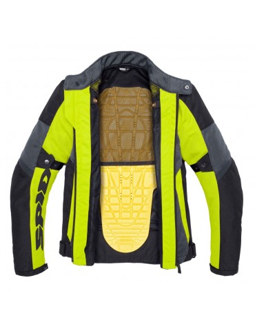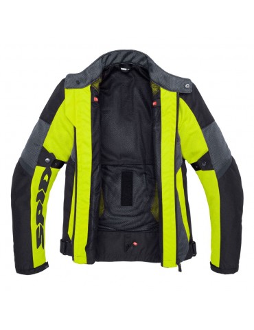 Casaco SPIDI Tek Net amarelo fluor. O SPIDI Tek Net é um blusão de turismo de comprimento médio, ideal para andar nas condições climatéricas mais quentes. Os painéis de malha no peito, nos braços e nas costas proporcionam uma ventilação significativa, permitindo que o ar flua diretamente para refrescar o ciclista sem comprometer a segurança.
