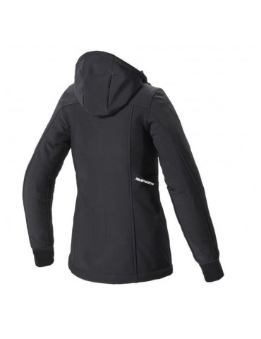 Casaco SPIDI Hoodie Armor Lady preto. A nova SPIDI Hoodie Armor Lady é a edição feminina do popular modelo masculino. O casaco certificado prEN 17092-4: 2017 Classe A tem um capuz no interior, protectores Warrior Lite de nível 1 amovíveis nos ombros e cotovelos, com protector opcional Back Warrior back back (Nível 1 En 1621-2: 2012). O capuz Armor Lady é feito de tecido Softcell resistente à abrasão, com forro em microfibra e detalhes reflectores para uma maior visibilidade nocturna.