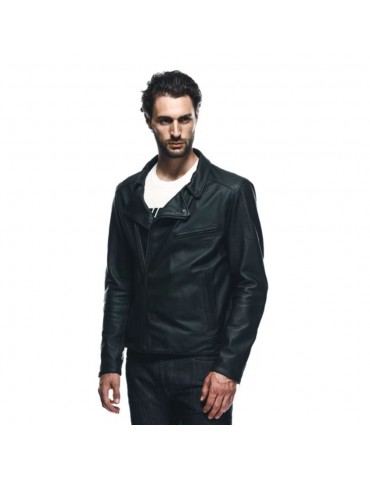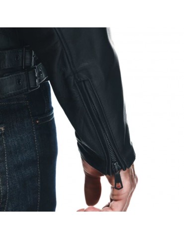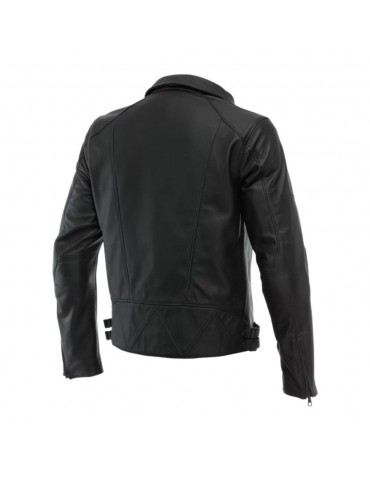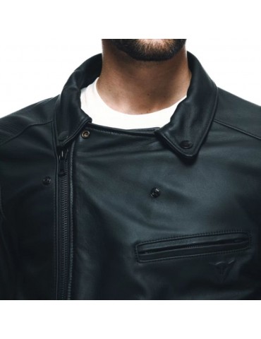 Casaco DAINESE Chiodo preto. Casaco de motociclista urbano em pele de vaca macia, com protectores Pro-Armor amovíveis nos ombros e cotovelos, bolso impermeável e sistema de fixação para calças. Conforto e segurança combinados com um look vintage neste casaco de corte clássico com construção de trespassado.