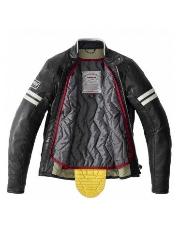 Casaco SPIDI Vintage gelo / preto. Oferece toda a protecção e estilo de um casaco de motociclista tradicional, com o benefício adicional do conforto do couro encerado italiano original, um material com uma suavidade e aparência inigualáveis.