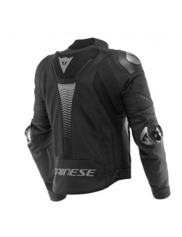 Casaco DAINESE Super Speed 4 preto fosco / charcoal cinza.  Este é o casaco de motociclismo desportivo feito de pele de vaca D-Skin com inserções de tecido bi-elástico Microelastic 2.0 e S1, desenvolvido para moldar ao corpo e seguir os seus movimentos.