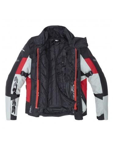 Casaco SPIDI Crossmaster gelo / vermelho. SPIDI Crossmaster é o conjunto Adventure multicamadas concebido para climas temperados, com tecnologia Step-In Wear. O revestimento é feito de poliéster 600 de alta tenacidade, que oferece excelente resistência à abrasão e perfurações. 2 painéis de malha e 2 aberturas de ventilação garantem uma excelente circulação de ar; eles foram estrategicamente posicionados para resfriar o ciclista da maneira mais eficiente durante os dias mais quentes.