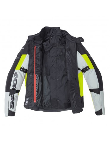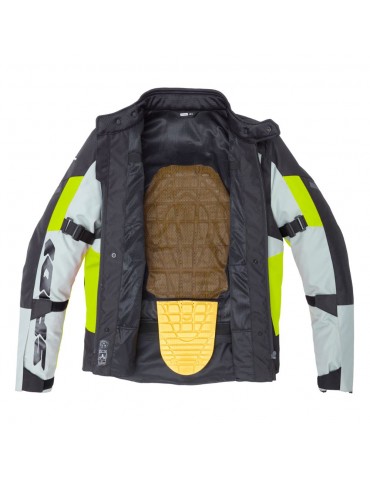 Casaco SPIDI Crossmaster amarelo fluor. SPIDI Crossmaster é o conjunto Adventure multicamadas concebido para climas temperados, com tecnologia Step-In Wear. O revestimento é feito de poliéster 600 de alta tenacidade, que oferece excelente resistência à abrasão e perfurações. 2 painéis de malha e 2 aberturas de ventilação garantem uma excelente circulação de ar; eles foram estrategicamente posicionados para resfriar o ciclista da maneira mais eficiente durante os dias mais quentes.