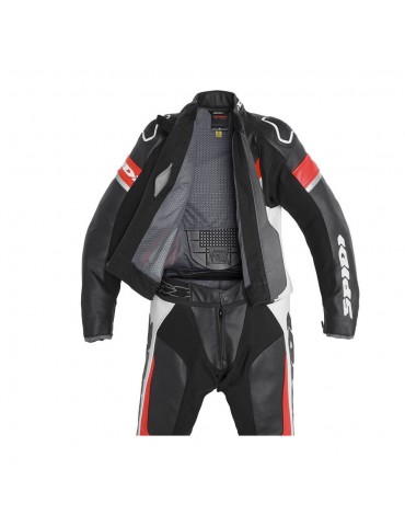 Fato SPIDI Laser Touring Lady preto / vermelho. A Laser Touring Lady foi especificamente desenvolvida pela SPIDI para os pilotos de Sport e Sport/Touring. Cada Laser Touring Lady tem a certificação CE prEN 17092-2:2017 Classe AAA e possui um chassis principal em couro italiano resistente de 1,1 a 1,3 mm: um material inigualável em termos de desempenho e durabilidade. As inserções elásticas de nylon de alta tenacidade e de couro acordeão estrategicamente colocadas oferecem a máxima flexibilidade combinada com uma resistência extrema à abrasão.