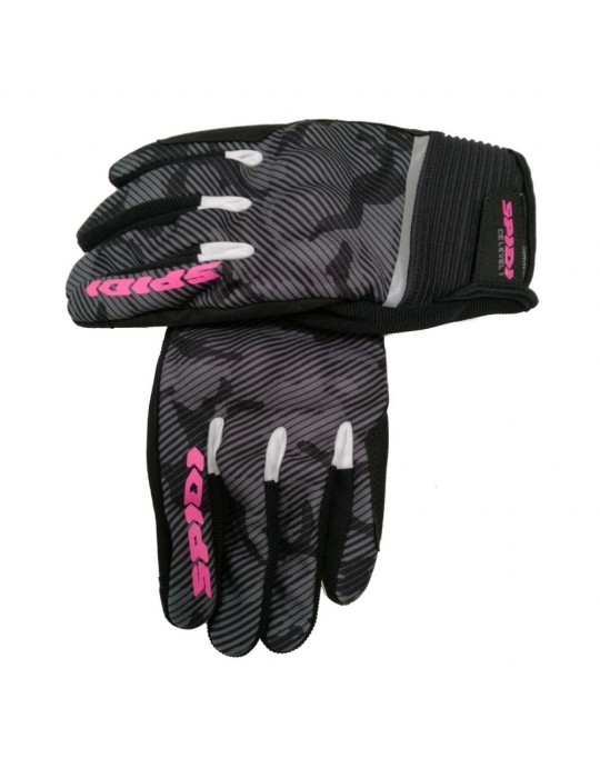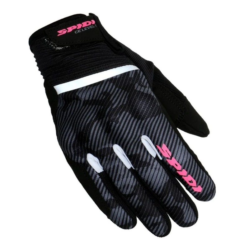 Luvas SPIDI Flash CE Lady camuflagem preto. Curtas especificamente concebidas para mulheres. Feitos de malha elástica e microfibra, têm um protector na zona dos nós dos dedos. Oferecem excelente conforto e ventilação, por isso são perfeitos para a primavera e o verão.