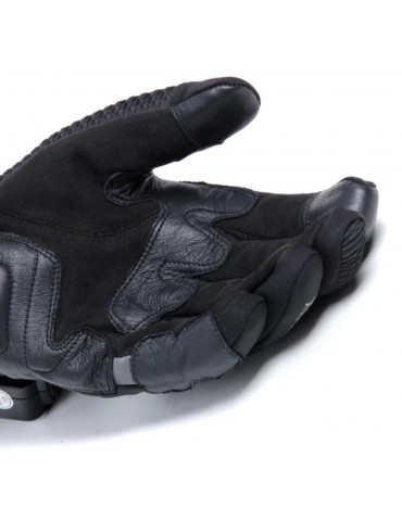 Foi dada a máxima atenção ao conforto térmico, combinado com um nível de proteção em conformidade com os padrões Dainese, graças aos reforços em pele de carneiro na palma da mão e nos dedos, e aos protectores dos nós dos dedos em poliuretano viscoelástico macio Comf-tek, ergonomicamente concebidos para uma sensibilidade máxima durante a condução.