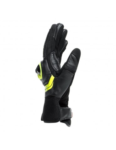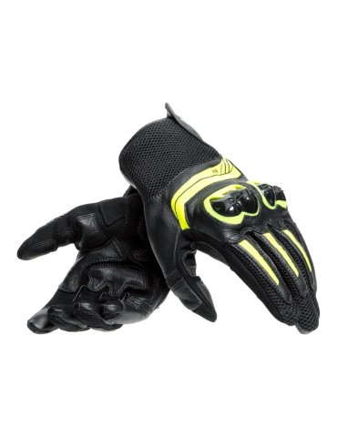 Luvas DAINESE Mig 3 Unisexo preto / amarelo fluor. As luvas Dainese Mig 3 Black são versáteis e confortáveis, feitas de couro nas partes mais expostas, com palma macia em Amica Suede e malha ventilada para o máximo conforto, mesmo nos dias mais quentes. Protectores ergonómicos dos nós dos dedos em TPU.