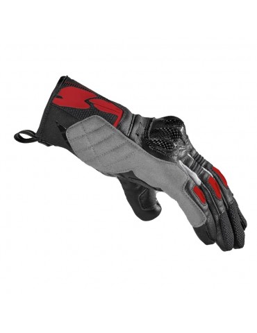 Luvas SPIDI G-Carbon preto / vermelho / cinza. São feitas de couro de cabra com uma espessura de 0,6 / 0,8 mm, proporcionando maior flexibilidade e sensibilidade durante a condução. Incorpora protetores de junta com certificação de nível 1.