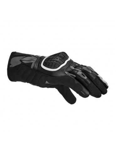 Luvas SPIDI G-Warrior preto. Desenvolvida como uma luva técnica de motociclismo para servir os condutores de todos os níveis de condução. São feitos de pele de cabra de 0,6 mm a 0,8 mm, apreciada pela sua resistência à abrasão comparável à pele de vaca, mas com uma espessura inferior, o que oferece uma melhor sensibilidade. Possuem a certificação EN13594:2015 KP. A palma e as costas da mão são acolchoadas e com dupla camada para protecção extra, com uma camada extra de couro na parte exterior da luva e uma armadura nos nós dos dedos. As luvas G-Warrior são compatíveis com o ecrã táctil, o que significa que não terá de as tirar para alterar as suas definições de GPS, e incluem secções flexíveis de acordeão na parte de trás do índice, no meio e no terceiro dedo para garantir que as luvas são tão confortáveis quanto possível. Os orifícios perfurados proporcionam uma excelente ventilação, e o fecho do pulso é uma cinta de velcro ajustável.