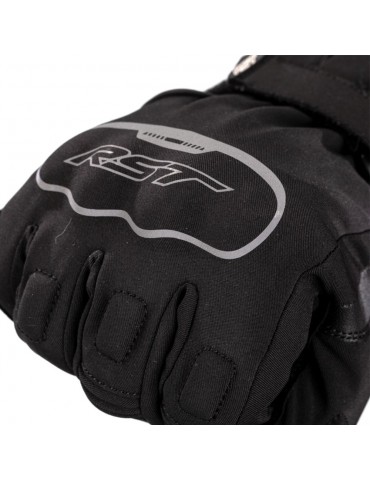 Luvas RST Axiom WP preto. Marcação CE Nível 1. Concebidas para resistir ao tempo húmido. Fabricadas em couro de grão completo, com membrana SinAqua à prova de água e detalhes reflectores. Dedos pré-curvados e painéis de dedo indicador e polegar com elástico táctil. Palma de couro de dupla camada, reforçada com acolchoamento e pegas de silicone para uma aderência extra.