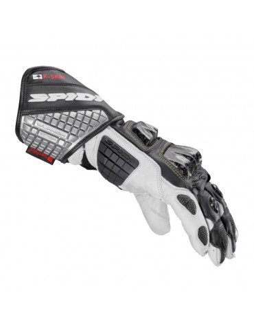 Luvas SPIDI Carbo Kangaroo preto / branco. Representam as luvas de corrida de maior desempenho na colecção SPIDI.